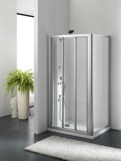 FERBOX Porta 3 ante scorrevoli, h.185 cm, cristallo trasparente spessore 3 mm.