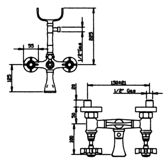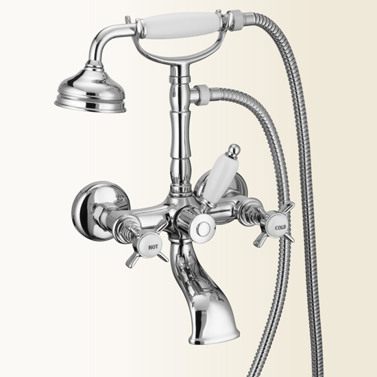 GABOLI F.LLI RUBINETTERIA LIVINGSTONE gruppo vasca esterno senza gancio duplex, con doccia, flessibile e vitoni ceramici.