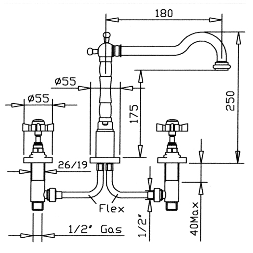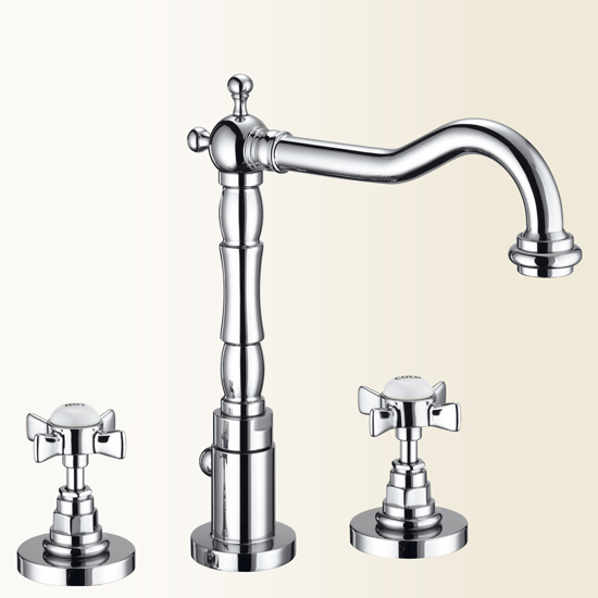 GABOLI F.LLI RUBINETTERIA LIVINGSTONE batteria lavabo con canna alta, scarico automatico e vitoni ceramici.