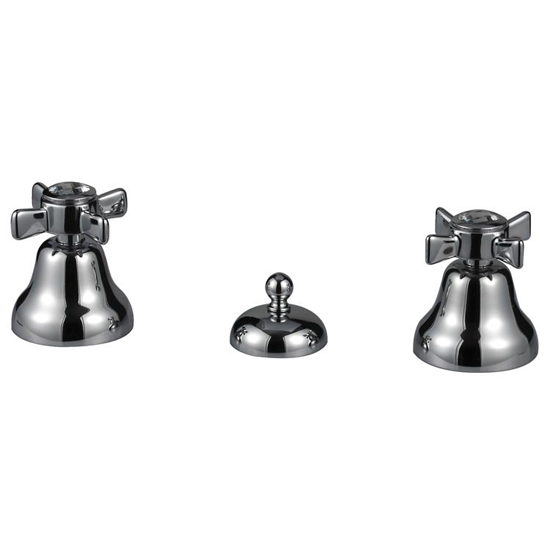 RUBINETTERIA SANITEX BIJOU batteria bidet 3 fori con vitoni ceramici a 90°, astina saltarello e scarico 1 pollice 1/4. La collezione Bijou, con maniglie in vero cristallo Swarovski, con la magia della sua forma e' nata per dare al vostro ambiente un tocco di raffinatezza ed eleganza. La superficie riflettente dello Swarovski incastonato nella maniglia libera e seduce il silenzio del suo contorno. Una serie che essenzializza al massimo il concetto di rendere gradevole la vita in ogni sua parte.