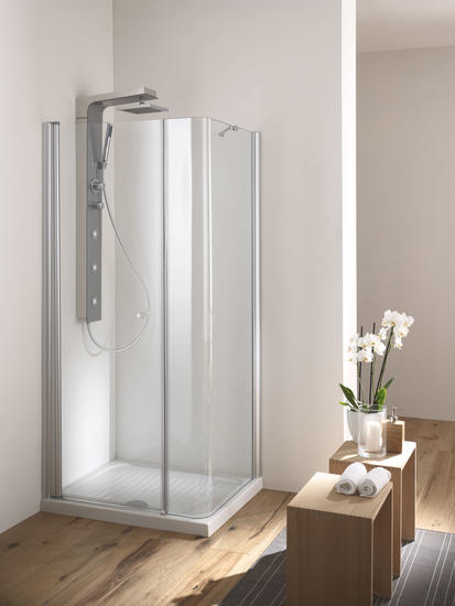 SOHO Box doccia Angolare porta battente finitura argento satinato P90 - F70 cm trasparente (misura 68/70-88/90 h.200)