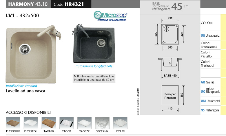 Ogni lavello cucina PLADOS viene sempre fornito completo di: