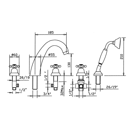 GABOLI F.LLI RUBINETTERIA PAPIRO batteria bordo vasca con kit doccia, maniglia Papiro.