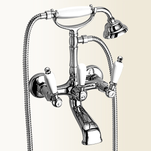 GABOLI F.LLI RUBINETTERIA LOTUS Gruppo vasca esterno con kit doccia, senza gancio duplex, con vitoni ceramici.