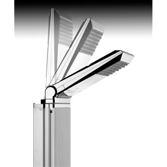 DROP Pannello Doccia modello Prisma – Fiven con finitura in alluminio e 4 testine idromassaggio a filo pannello orientabili. Miscelatore termostatico o monocomando per una regolazione della temperatura dell'acqua sempre perfetta. Finitura a scelta tra Satinato, Nero e Cromato a specchio. Altezza 140cm.