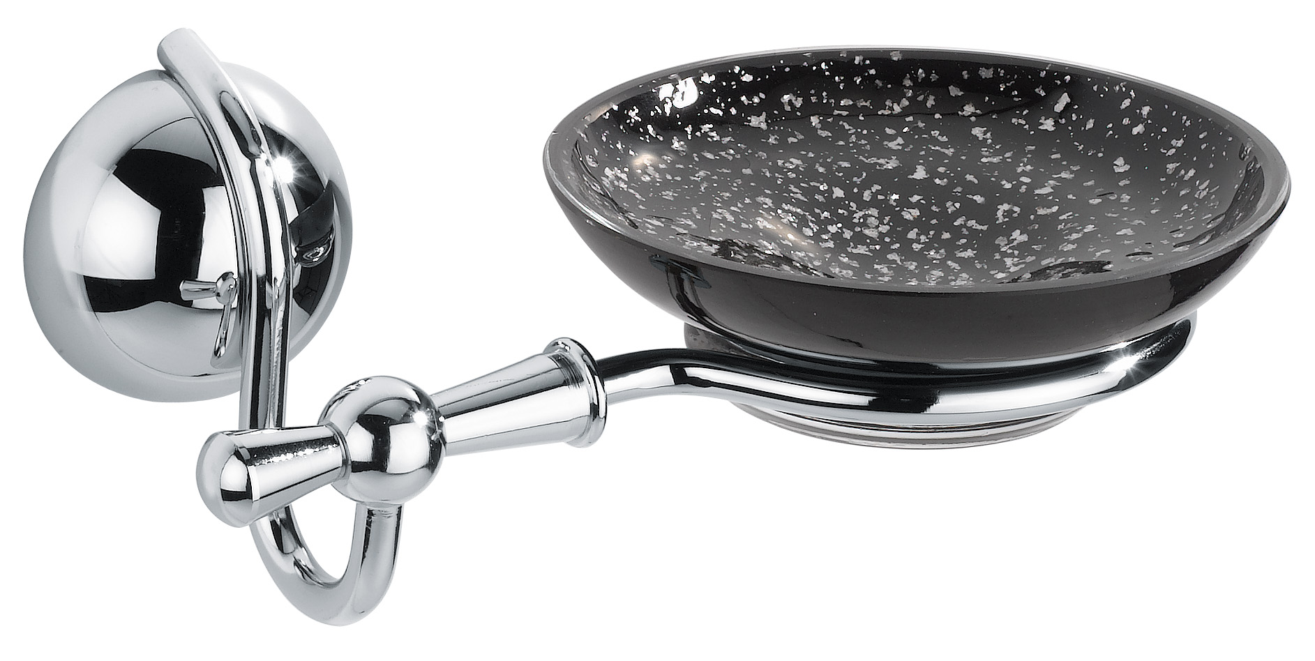 LUXOR porta sapone con vetro nero e argento L19xP12,5xH8,5