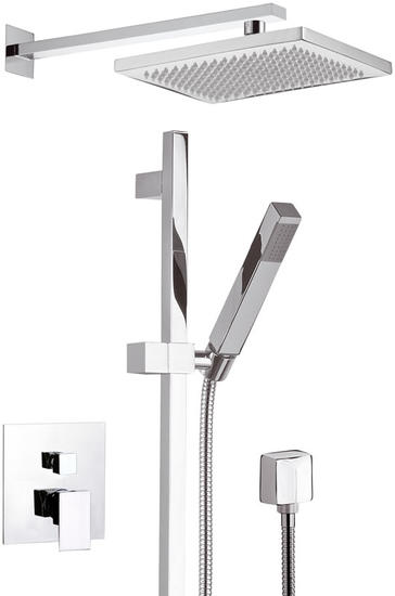 DANIEL RUBINETTERIE Set doccia composto da: Art. A590 A553, soffione 20 cm a pioggia quadrato completamente in ottone con braccio cm 30, Art. A345 495, saliscendi con doccetta,tutto in ottone, Art. A521, Attacco presa acqua, tipo quadrato, pesante, Art. SK612B, miscelatore incasso con deviatore, finitura cromo