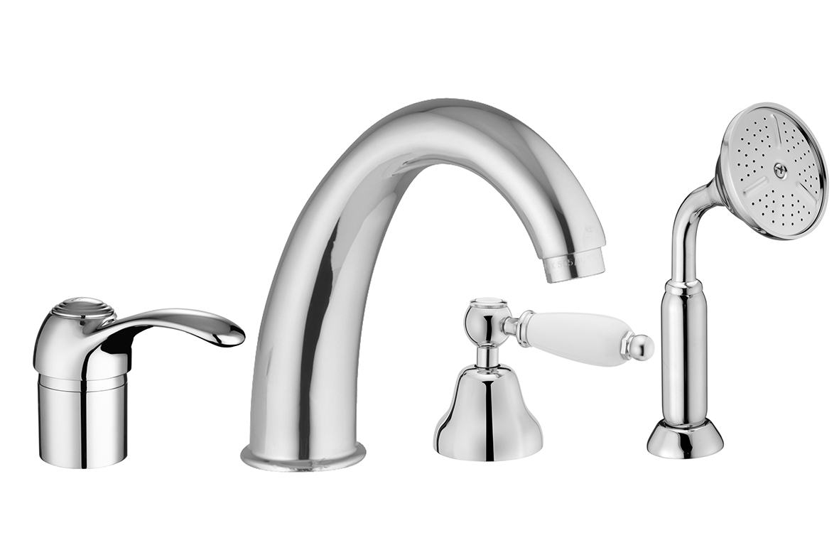 ROYAL Batteria monocomando bordo vasca quattro fori con deviatore e bocca finitura cromo