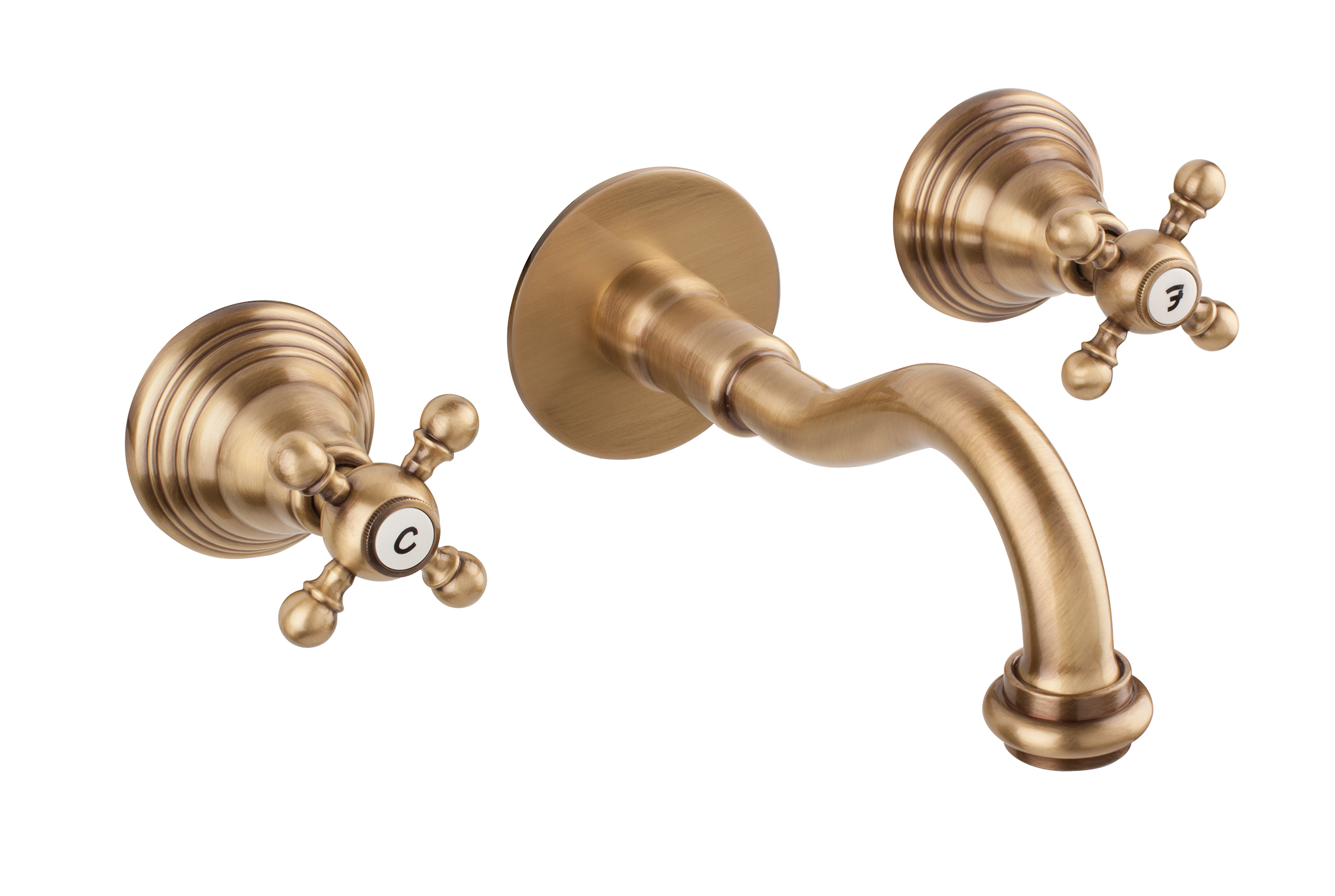 OLD FASHION Batteria lavabo a muro con canna mm 160 finitura bronzato