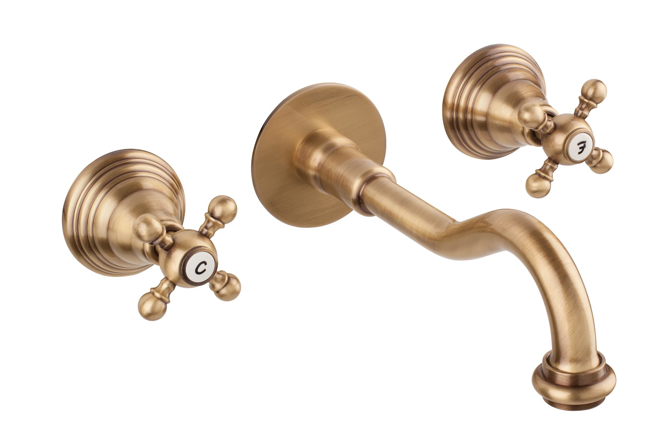 OLD FASHION Batteria lavabo a muro con canna mm 200 finitura ramato