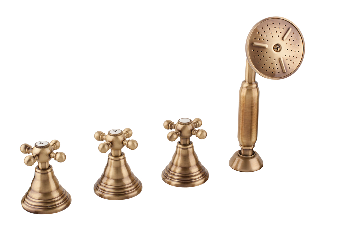 OLD FASHION Batteria bordo vasca con deviatore e doccetta finitura nichel antico