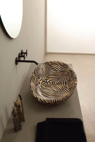 BIKO lavabo d'appoggio finitura zebra arancio