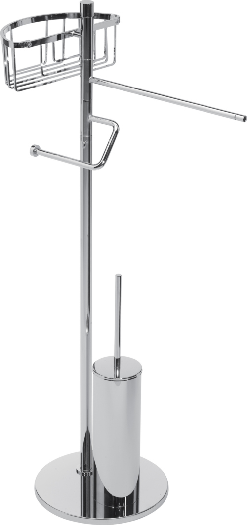 MT Piantana in ottone cromato con una griglia semicircolare + porta salviette + porta rotolo + porta scopino