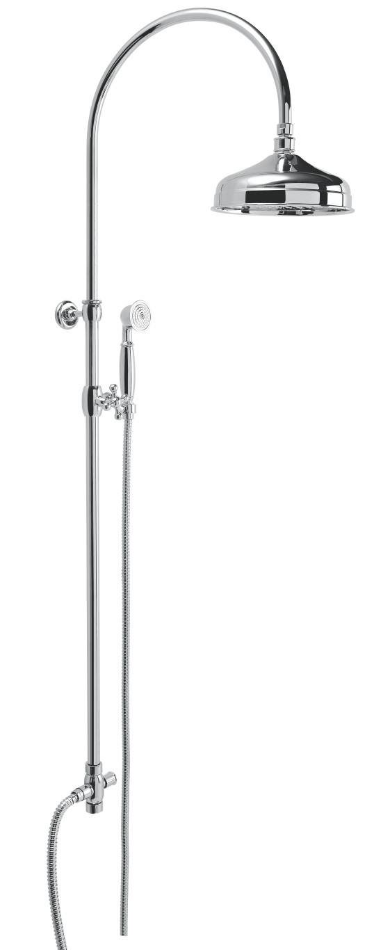 DAMAST - ANTICA Set colonna tonda composto da asta 335 telescopica e girevole in ottone cromato Ø 22 mm, soffione Antico 200 in ottone cromato Ø 208 mm, doccia Antica in ottone cromato 1 getto e flessibile 150 cm doppia aggraffatura, completo di deviatore.
