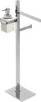 CARLO IOTTI - BASIC Piantana in ottone cromato con elementi fissi: n.1 porta salviette lunghezza 25cm. + n. 1 porta rotolo + n.1 porta dosatore in vetro resina poliestere; base rettangolare.