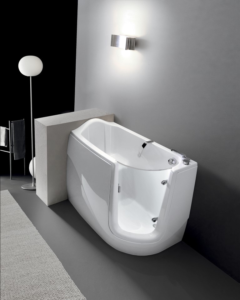 BAGNO ITALIANO - VASCA 130 Vasca per disabili e per anziani, in vetroresina e con sportello in plexiglass 130 x 75 H.95/105 cm e rubinetteria.
