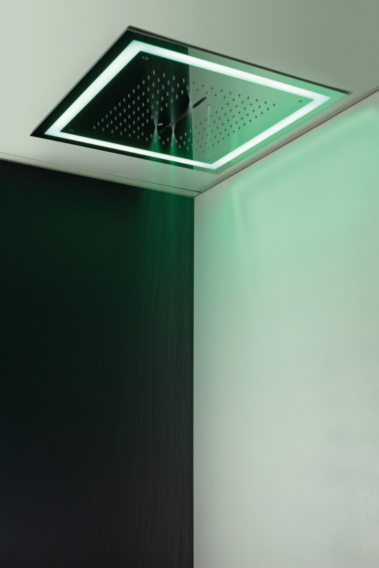 K4102 Soffione ad incasso quadro400x4000 getto pioggia + cascata + cornice LED perimetrale in acciaio inox finitura super mirror completo di telecomando